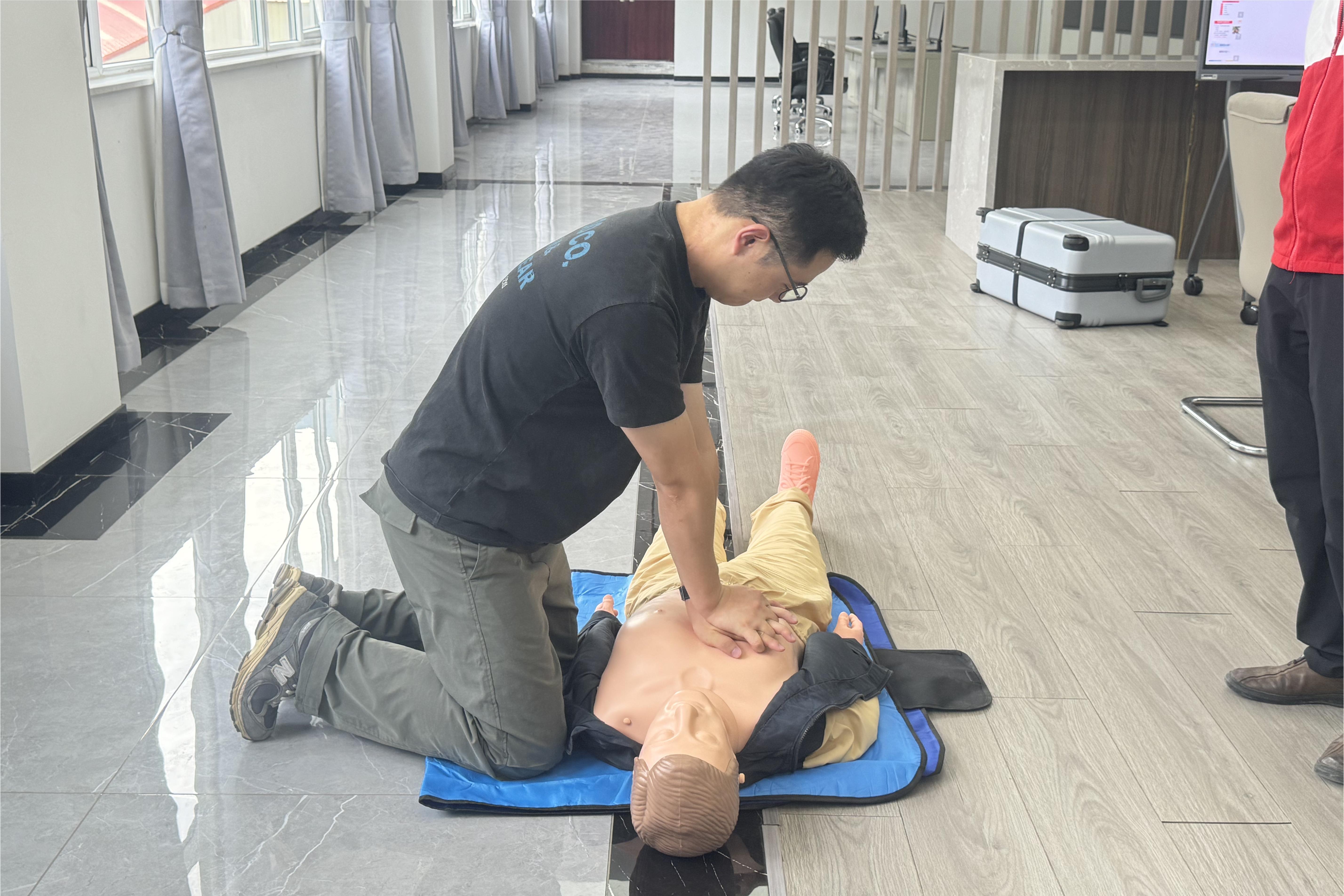 授課老師演示結(jié)束后,邀請(qǐng)?jiān)趫?chǎng)員工用模擬假人進(jìn)行救護(hù)練習(xí)并進(jìn)行技術(shù)指導(dǎo),參訓(xùn)人員積極互動(dòng),踴躍參加實(shí)操,為公司“提升急救能力,守護(hù)生命安全”營造良好氛圍。