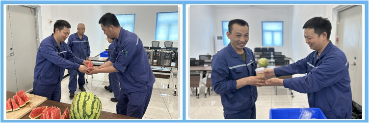生產(chǎn)技術(shù)處處長(zhǎng)為員工分發(fā)西瓜和防暑降溫飲品