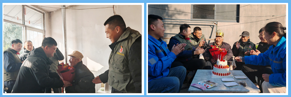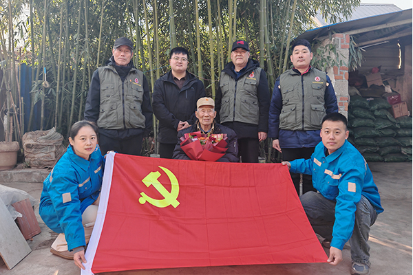 中共濟寧海環支部的黨員代表們,隨泗水縣退役軍人協會一同前往,為田爺爺送上鮮花、蛋糕與真摯的祝福。1951年參軍入伍的他,曾為家國安寧奔赴戰場,用青春熱血書寫忠誠。